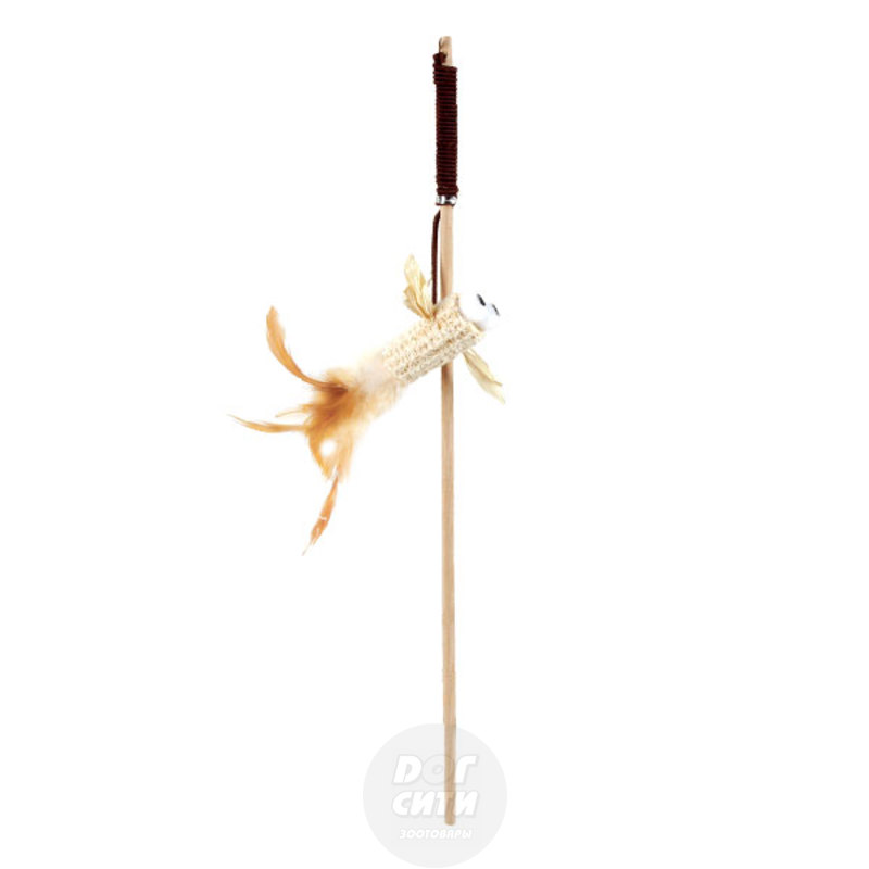 Удочка-дразнилка для кошек из кукурузы, перьев и дерева с игрушкой "Птичка". Игрушка изготовлена из натуральных материалов, в том числе кукурузных листьев - натурального материала, безопасного для пищеварения вашего питомца.