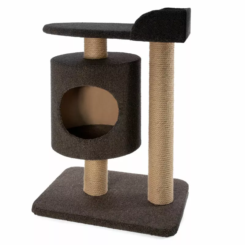Многоярусный игровой комплекс для кошек с уютным домиком, когтеточками и удобной лежанкой - идеальное решение для интересного досуга вашего четвероного питомца. В комплектацию изделия входитассиметричная платформа с бортиком, просторный домик в основании комплекса, а также два независимых столбика-когтеточки толщиной 100мм с плотной джутовой обмоткой. Столь эффектный и функциональный игровой комплекс станет излюбленным местом отдыха и активной игры для усатых-полосатых любого возраста.
