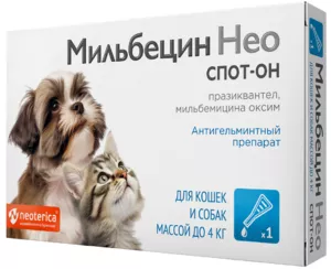 Антигельминтный капли спот-он широкого спектра действия для лечения и профилактики нематодозов и цестодозов у кошек и собак.