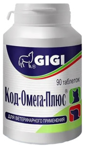 Пищевая добавка GiGi Код Омега Плюс для кошек и собак рекомендуются при кожных проблемах, патологиях связок и суставов, для улучшения шерсти накануне выставки или в период линьки.