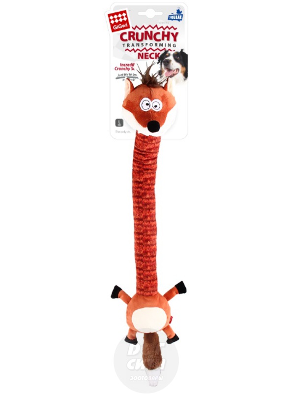 Игрушка для собак из серии "CRUNCHY NECK " с пищалкой и с хрустящей трансформирующейся шеей. Издает хрустящий звук, просто попробуйте согнуть шею! Внутри игрушки находится механизм, который защищен специальным пеноматериалом.