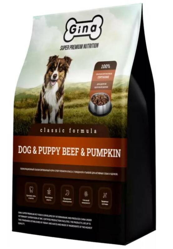 Gina для свзрослых обак и щенков Говядина и тыква, Джина