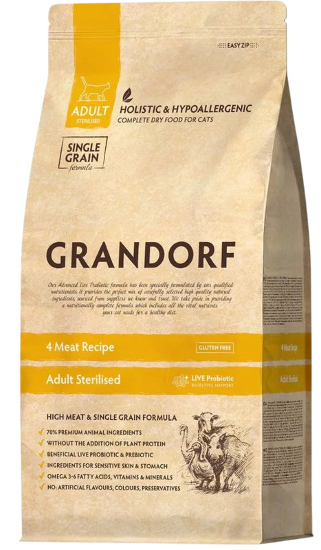 Грандорф для стерилизованных кошек 4 вида мяса с рисом, Grandorf