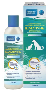 Лечебно-профилактический шампунь для кошек и собак при заболеваниях кожи, вызванных бактериальной или грибковой микрофлорой и для профилактики инфицирования мелких ран на коже.