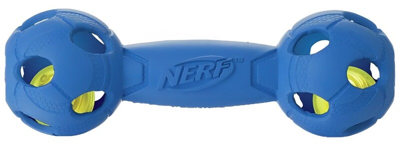 Гантель Нерф из прочной резины с отверстиями и отверстиями и LED-лампой внутри, идеально подойдет для игры с собакой в тёмное время суток.