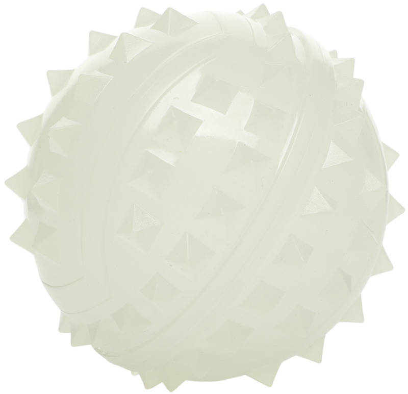 Игрушка для собак «Мяч с шипами» накапливает свет от естественного или искусственного освещения и эффектно отдает его в темноте. Для «зарядки» просто положите мяч под любой источник света на 30-60 минут.