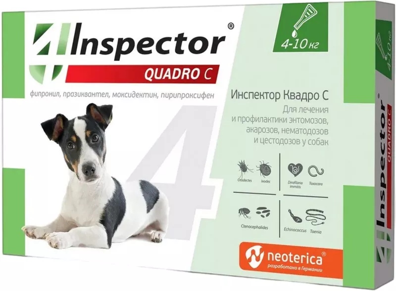 Inspector Quadro — комплексный препарат против 20 видов внешних и внутренних паразитов.
