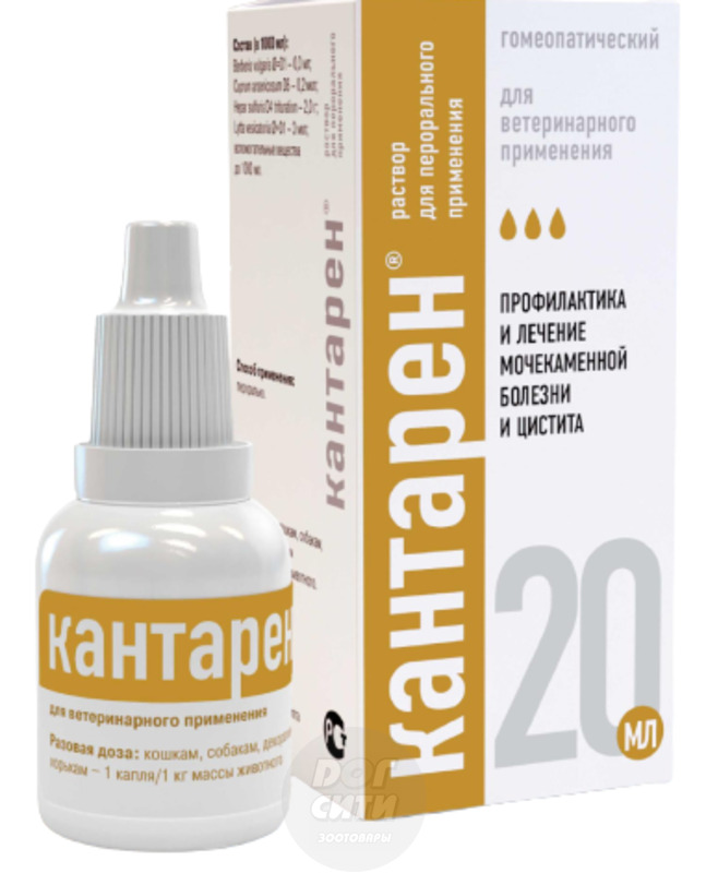 Назначают собакам и кошкам в составе комплексного лечения при заболеваниях почек и мочевыводящих путей в инъекциях или пероральных каплях. Канторен в таблетках, к сожалению, на сегодня снят с производства. Но вы можете купить для своего питомца капли Кантарен.