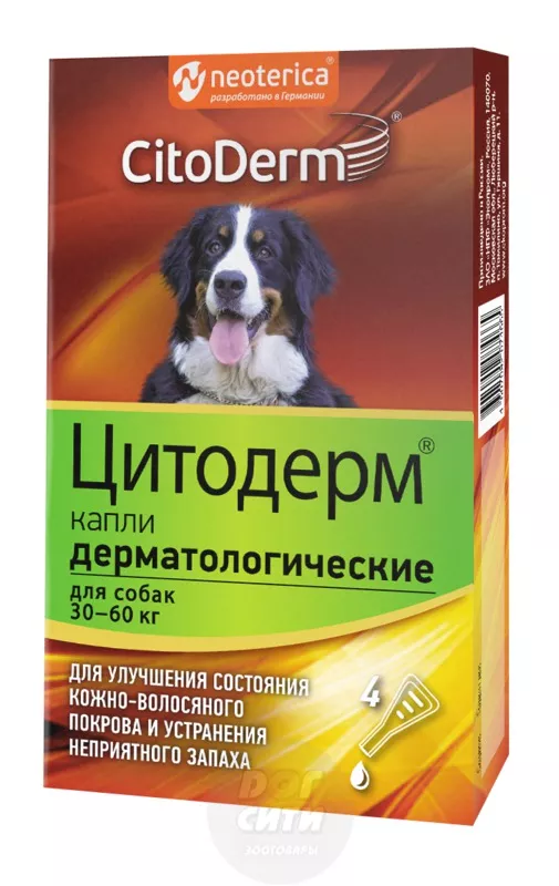 Капли Цитодерм дерматологические для собак 10–30 кг, 4 пипетки по 3 мл