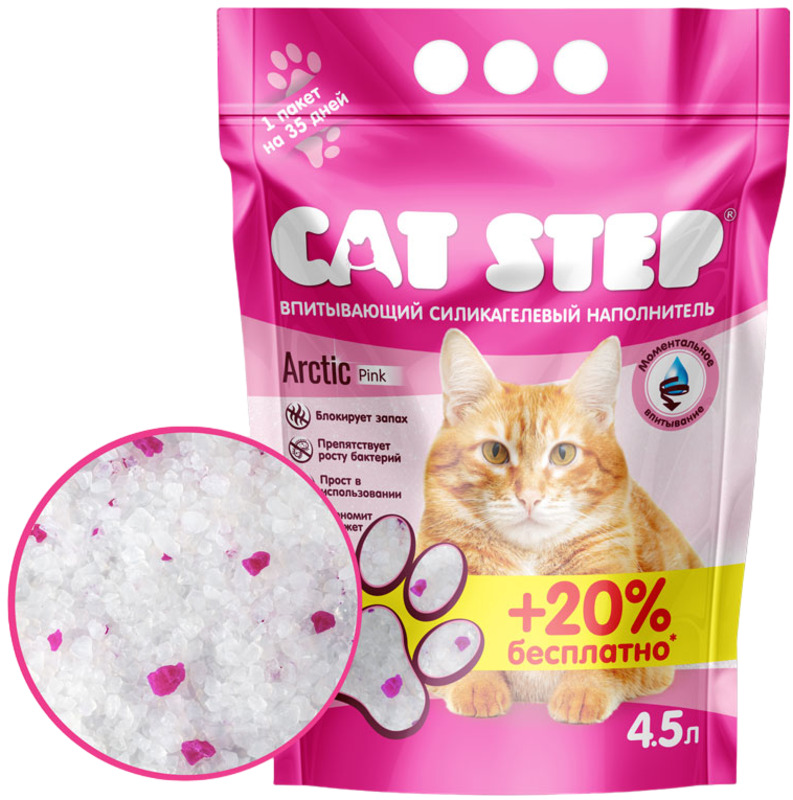 Cat Step Arctic Pink силикагелевый наполнитель, Кэт Степ
