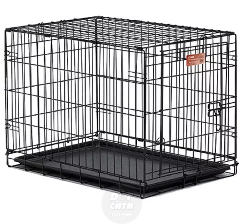 Устойчивая клетка выполнена из качественного металла, обеспечивающего безопасность животного и хозяина. Двери расположены на смежных боковых сторонах. Крепкий двойной замок-задвижка закрывается как снаружи, так и изнутри.
