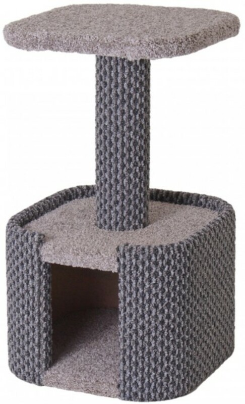 Когтеточка изготовлена из ДСП и фанеры, обтянутых ковролином: коготки отлично цепляются за микропетли, при этом мягкое полотно не травмирует когти питомцев. Когтеточка оснащена домиком, который ваш любимец сможет использовать для игр в прятки или для отдыха и сна. В верхней части когтеточки располагается полка-лежанка.