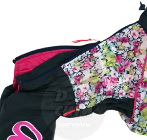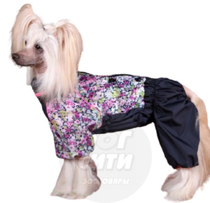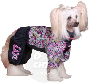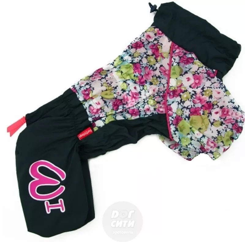 Комбинезон-дождевик ForMyDogs Цветы сиреневый для девочки из водоотталкивающего полиэстера,с молнией на спине.