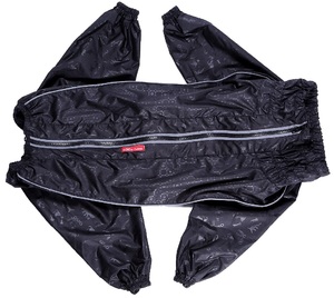 Комбинезон для собак без подкладки из водоотталкивающей и ветрозащитной ткани (100% полиэстер). Предназначен для прогулок в межсезонье, в сырую погоду для защиты собаки от грязи и воды.