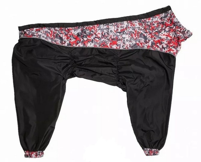 Комбинезон для собак эргономичен, удобен, не сковывает движений собаки при беге, во время игры и при дрессировке. Комфортная посадка по корпусу достигается за счет резинок-утяжек под грудью и животом. От попадания воды и грязи внутрь комбинезона низ штанин также сборен на резинку.