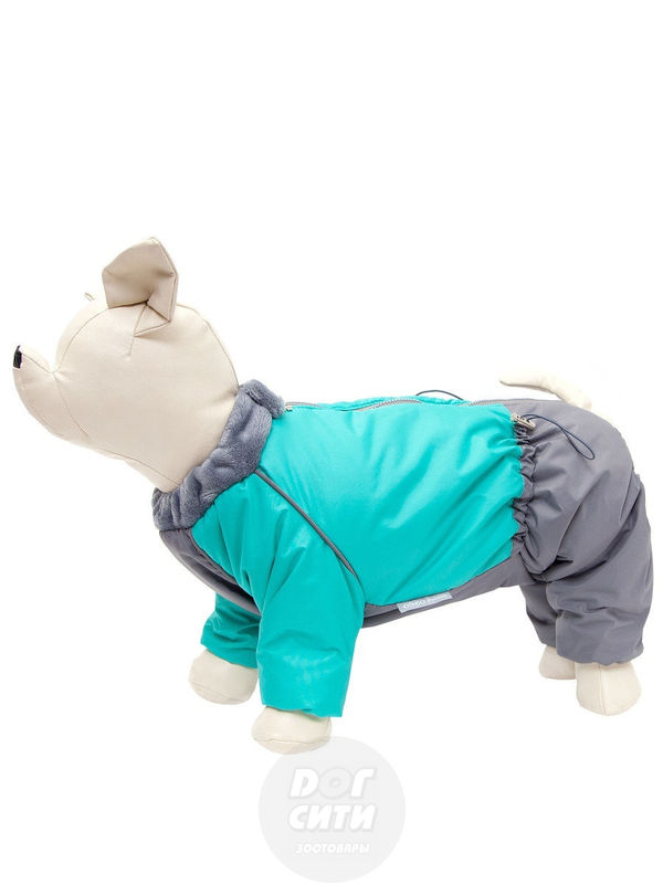Комбинезон легко одевается и застёгивается на спине с помощью молнии. На воротнике имеется кнопка для фиксации. Ворот комбинезона отделан мехом . Для лучшей посадки объём комбинезона регулируется с помощью шнурка - утяжки под животом, резинками на лапах. Светоотражающий кант сделает заметным Вашего питомца в темное время суток.