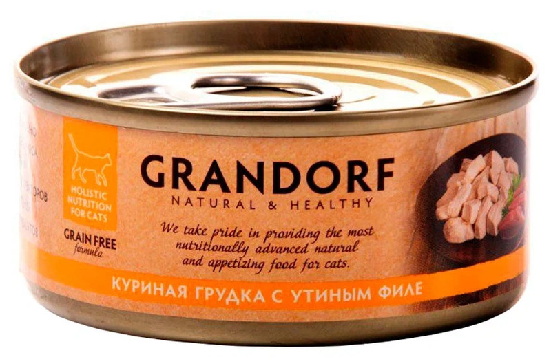 Grandorf консервы для кошек куриная грудка с утиным филе, Грандорф