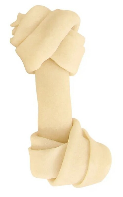 Долгоиграющее лакомство Триол для собак в виде узловой косточки из высушенной сыромятной кожи.