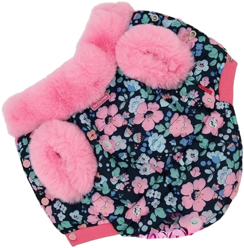Куртка ForMyDogs Цветы синий с розовым, ФоМайДог