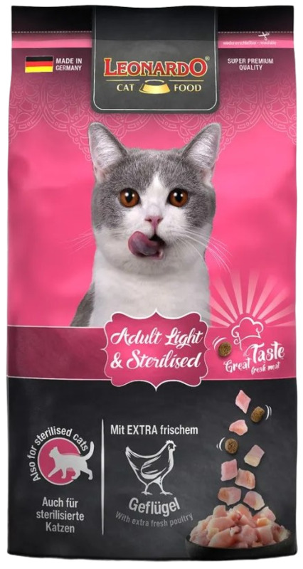 Сухой корм для кошек с избыточным весом или быстро набирающим вес. Корм Leonardo Light был специально разработан для животных, страдающих избыточным весом. Пониженная энергетическая ценность и применение ценных питательных веществ способствуют профилактике возникновения данной проблемы.