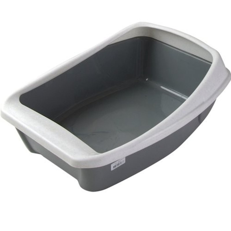 Туалет с высоким бортом для кошек. Размеры: 45,5*35*19 см. Цвет: белый/серый, белый/бежевый.