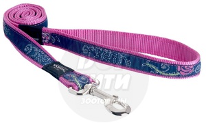 Поводок ROGZ M розовый с джинсовым принтом.