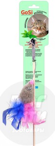 Дразнилка "Мышь с мятой хвост перо пышное на веревке" GoSi