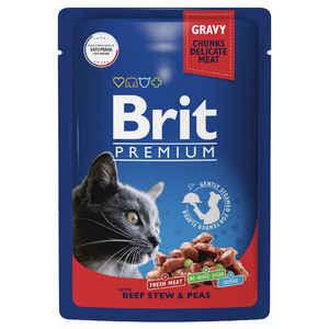 Brit Premium Adult Cat Пауч говядина и горошек, Брит