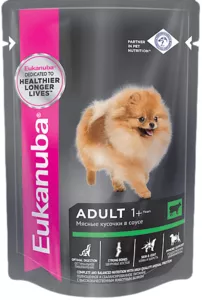 Есть в наличииДоставим сегодня Эукануба мясные кусочки в соусе для взрослых собак всех пород.Вес: 100г.