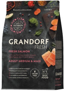 Grandorf Fresh Филе лосося с бататом для собак средних и крупных пород, Грандорф Беззерновой корм с живыми пробиотиками