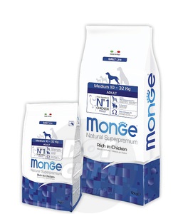 Нет в наличии Монж Медиум для взрослых собак средних пород (10 - 32кг) с курицей и рисом. Фасовка: 3 кг.