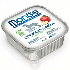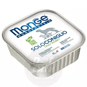 Нет в наличии Монж Соло монобелковый влажный корм для собак, в виде паштета с мясом кролика и яблоками. Фасовки: 150 гр