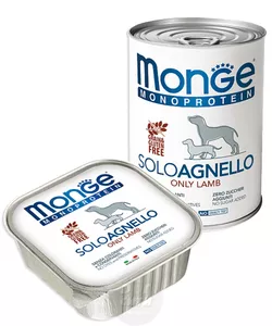 Нет в наличии Монж Соло монобелковый влажный корм для собак, в виде паштета с филе тунца. Фасовки: 150 г, 400 г.