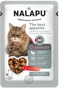 Nalapu The Best Appetite телятина с куриными сердечками соус для кошек с плохим аппетитом, Налапу