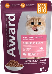 Влажный корм Award Healthy growth для котят кусочки в соусе с индейкой, Авард