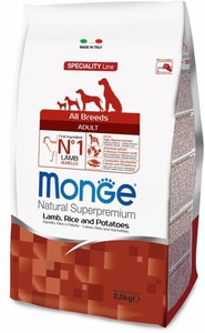 Нет в наличии Монж, сухой корм для взрослых собак всех пород с ягненком, рисом и картофелем. Фасовки: 2.5 кг, 12 кг
