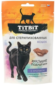 Хрустящие подушечки ТитБит для стерилизованных кошек с кроликом, TitBit