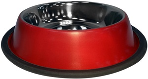 Есть в наличииДоставим сегодня Миска металлическая на нескользящей подставке. Объем: 0,2 л. Цвет: красный.