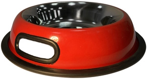 Есть в наличииДоставим сегодня Миска металлическая на нескользящей подставке с ручками. Объем: 0,6 л. Цвет: красный.