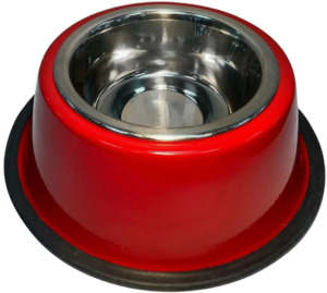 Есть в наличииДоставим сегодня Миска металлическая на нескользящей подставке. Объем: 0,2 л. Цвет: красный.