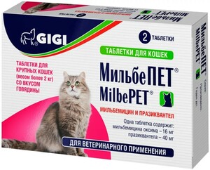 Нет в наличии Комплексный противопаразитарный препарат МильбеПет для лечения и профилактики основных видов нематод и цестод, а также смешанных инвазий у кошек. Фасовка: 2 таблетки (весом более 2 кг).
