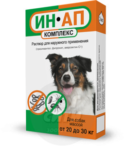 Нет в наличии ИН-АП комплекс для борьбы с блохами, вшами, власоедами и клещами) собак весом 20 - 30 кг. Объем: 3 мл.