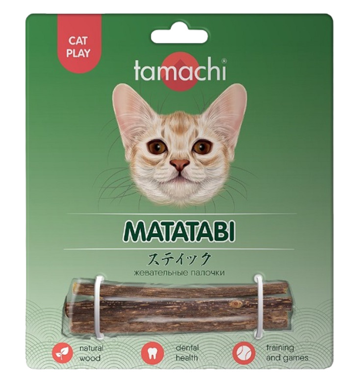 Жевательные палочки изготовлены из 100% натурального японского дерева Мататаби для продолжительной игры и поднятия настроения кошки.