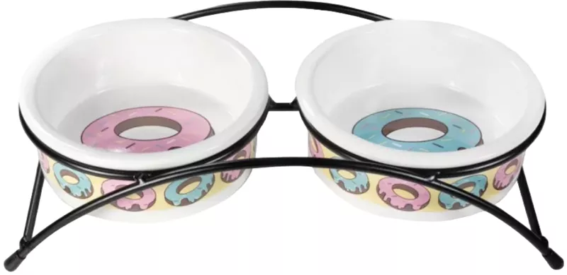 Стильный и функциональный комплект из двух круглых мисок на подставке для кошек и собак.