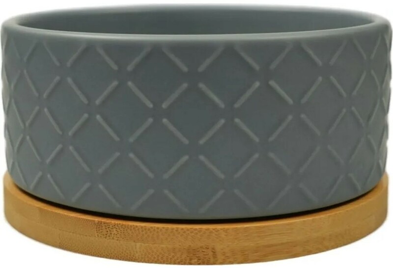 Миска Mr.Kranch Bamboo керамическая серая на бамбуковой подставке, Мистер Кранч