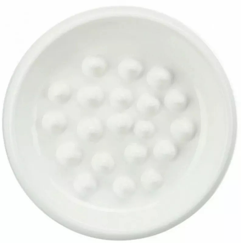 Миска со специальной формой дна, которая препятствует быстрому поглощению пищи вашей кошкой, для которой быстрая еда чревата заглатыванием больших кусков и вздутием живота. Процесс происходит более медленно за счет специальной конструкции дна. Выступающие части гладкие и не могут повредить питомца.