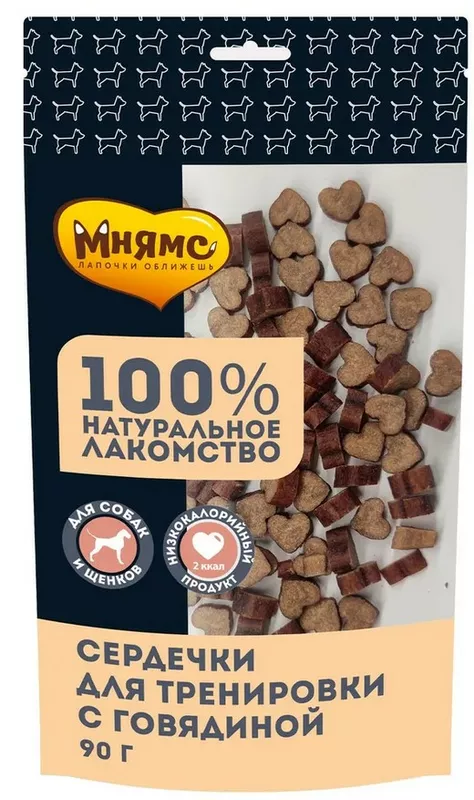 Мнямс тренировочные лакомства "Сердечки" с говядиной для взрослых собак и щенков старше 3-х месяцев предназначены для поощрения питомца во время прогулки и дрессировки. Благодаря высокой вкусовой привлекательности, низкой калорийности и оптимальному размеру каждого лакомства идеальны для собак любых пород. Не пачкают руки и не крошатся, подходят для использования в интерактивных игрушках.