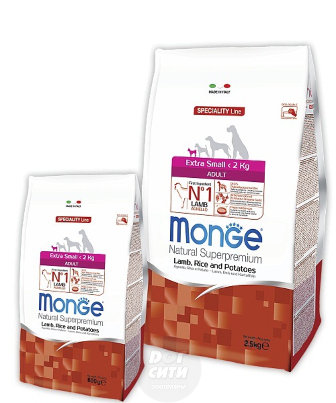 Monge Extra Small Adult lamb, rice and potatoes для собак миниатюрных собак (до 4 кг), с ягненком, рисом и картофелем.