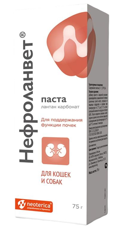Хроническая почечная недостаточность — серьезный диагноз, который нельзя оставлять без внимания. Это касается и собак, и кошек. В терапию патологического состояния входит ряд мероприятий, в том числе диета и дача специальной кормовой добавки. Действующий компонент пасты Нефроланвет лантан, проходя транзитом через желудочно-кишечный тракт, связывает опасный для почек фосфор и выводит его из организма. Регулярное применение средства приводит к: