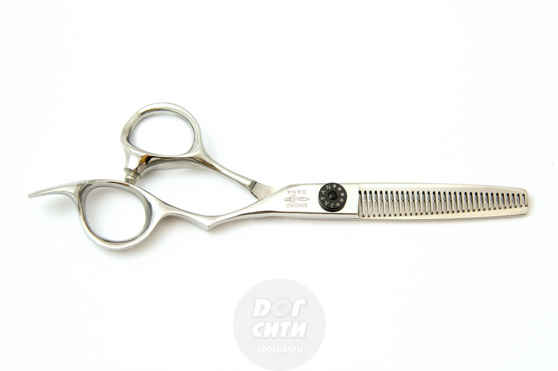 Филировочные ножницы для прореживания шерсти. С помощью таких ножниц можно сделать более плавный переход, проредить шубку животного, придать ей объем. А также они используются для того, чтобы выстричь мягкие ступени. Подходит для собак с жесткой и густой шерстью. Ножницы имеют упор для мизинца, силиконовый стопор и регулируемый винт.